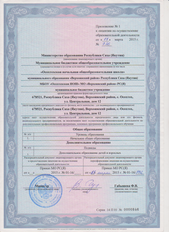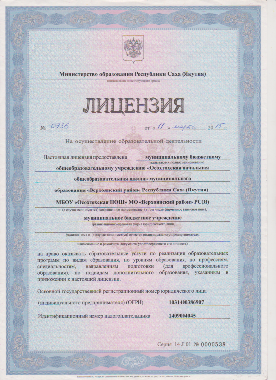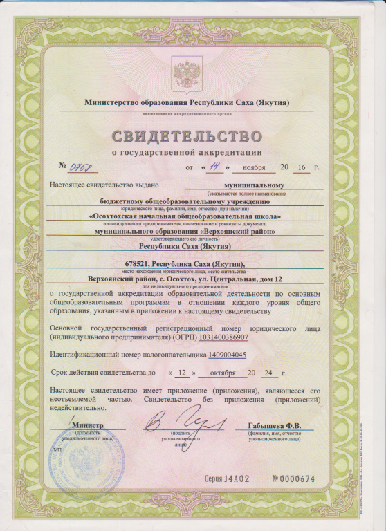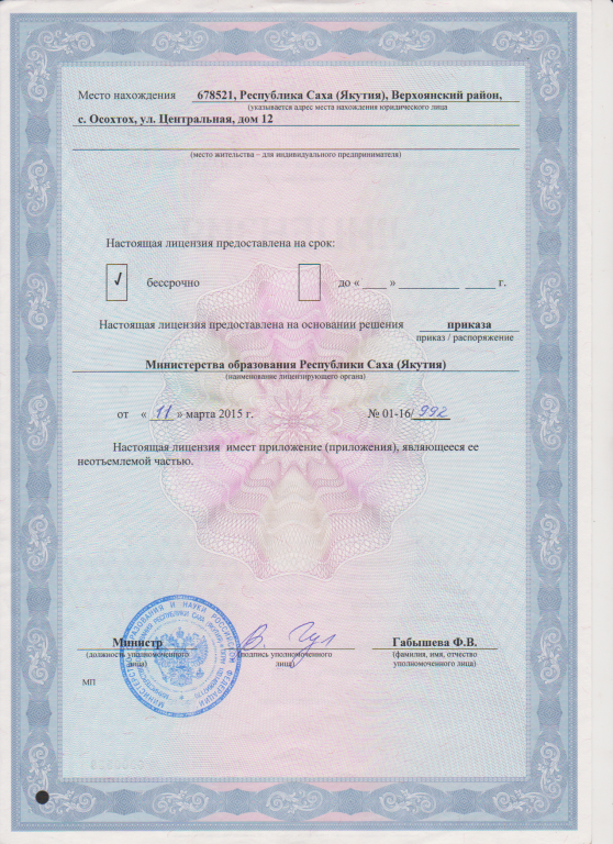 | Адрес местонахождения образовательной организации* | 678521,Республика Саха (Якутия), Верхоянский район, с..Осохтох ул. Центральная, дом 12 |